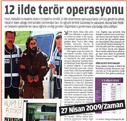 Taraf Gazetesi’nin manşetinden 45 gün önce (27 Nisan 2009) Vasat, Hizbullah, El Kaide ve Anadolu Federe İslam Devleti/İslami Cemaat ve Cemiyetler Birliği adlı gruplara baskın düzenlendi.