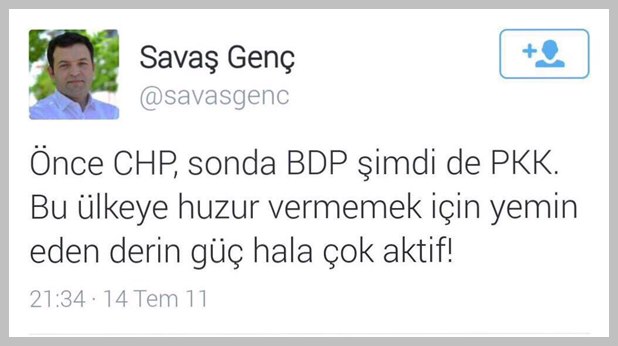 İşte çarkçı Savaş Genç ve Pensilvanya Cemaati'nin Türkiye'ye huzur vermemek için yeminli olan derin güçler ile kol kola girdiğini gözler önüne seren o tweetler: