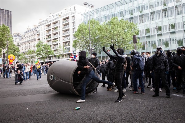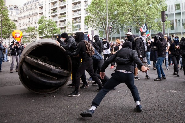 Paris'te düzenlenen çalışma yasası protesto eylemi, akşam saatlerinde çatışmaya dönüştü.
