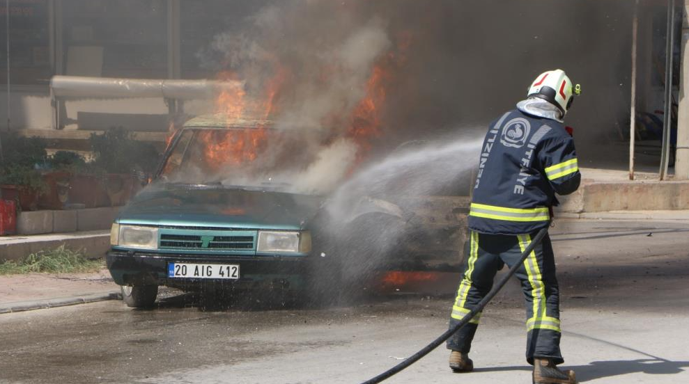 Olay, Denizli’nin Çivril ilçesi Rauf Denktaş Caddesi üzerinde meydana geldi. Edinilen bilgiye göre, 20 AIG 412 plakalı Tofaş marka otomobili ile ilçe merkezine gelen şahıs aracını park ederek işlerini halletmeye gitti. Park halindeki otomobilden dumanların ve alevlerin çıktığını gören vatandaşlar itfaiye ve polis ekiplerine haber verdi. Olay yerine polis ve İtfaiye ekipleri gelirken yanan otomobile ilk müdahaleyi çevrede bulunan vatandaşlar ve esnaf yaptı.