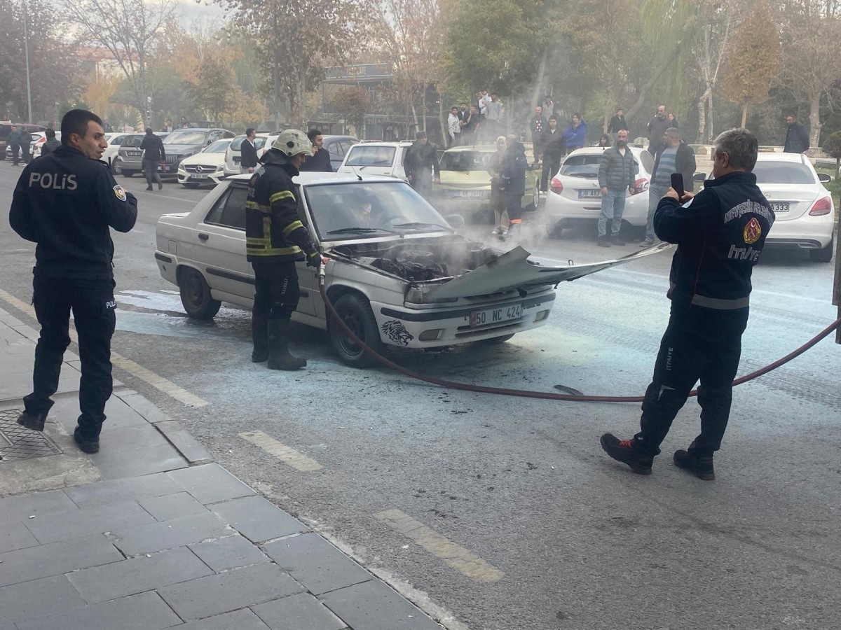 Nevşehir’de park halindeki otomobil, bir anda alev aldı.