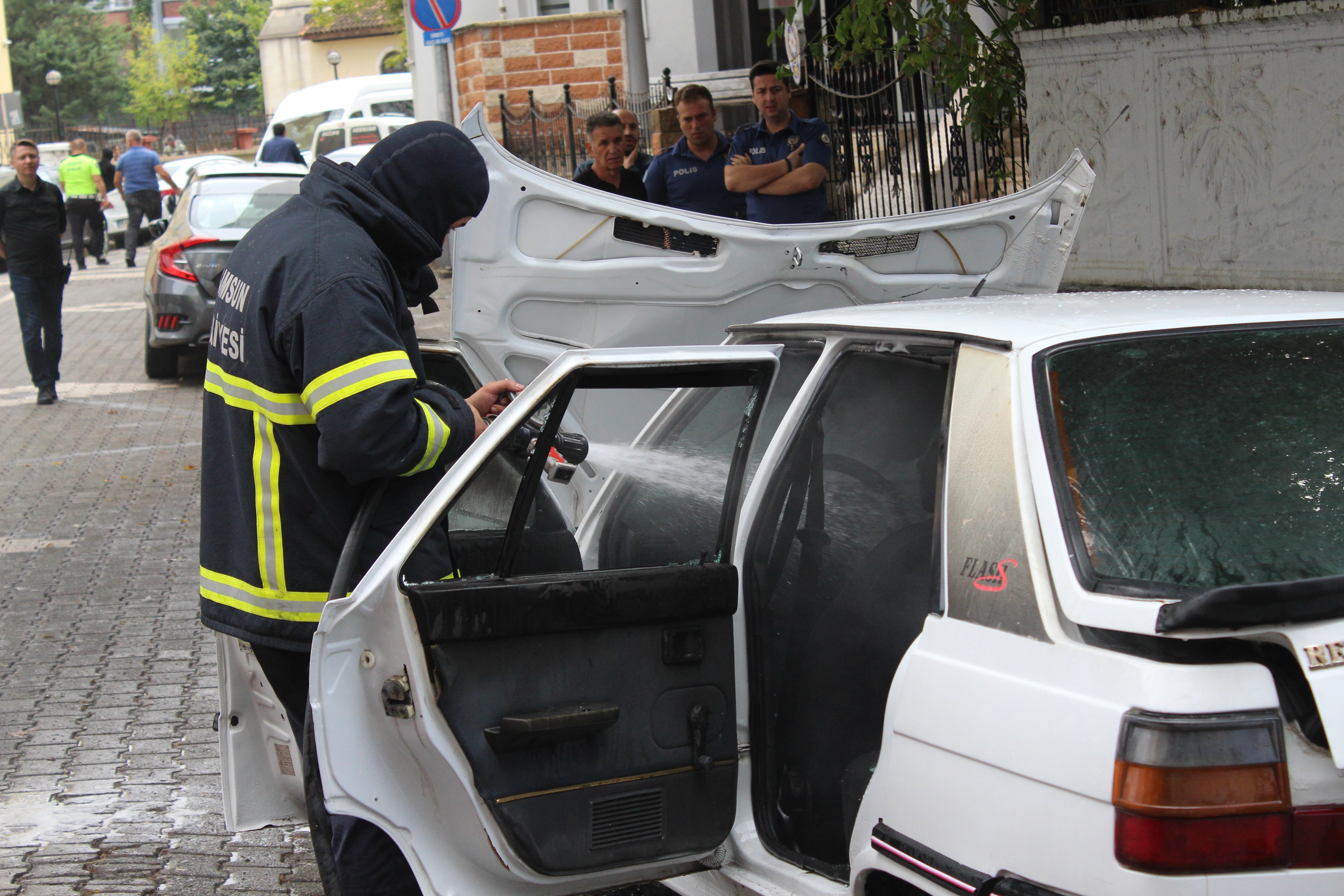 Olay, Samsun’un Çarşamba ilçesi Çay Mahallesi Cemil Şensoy Caddesi üzerinde meydana geldi. Edinilen bilgiye göre, cadde üzerinde park halinde bulunan Cemil Ö.’ye ait 55 AEM 285 plakalı otomobilden dumanlar yükseldi. Dumanları fark eden çevredeki vatandaşlar durumu 112 Acil Çağrı Merkezine bildirdi. Kısa sürede olay yerine gelen Samsun Büyükşehir Belediyesi itfaiye ekipleri otomobile müdahalede bulunarak, yangını büyümeden söndürdü.