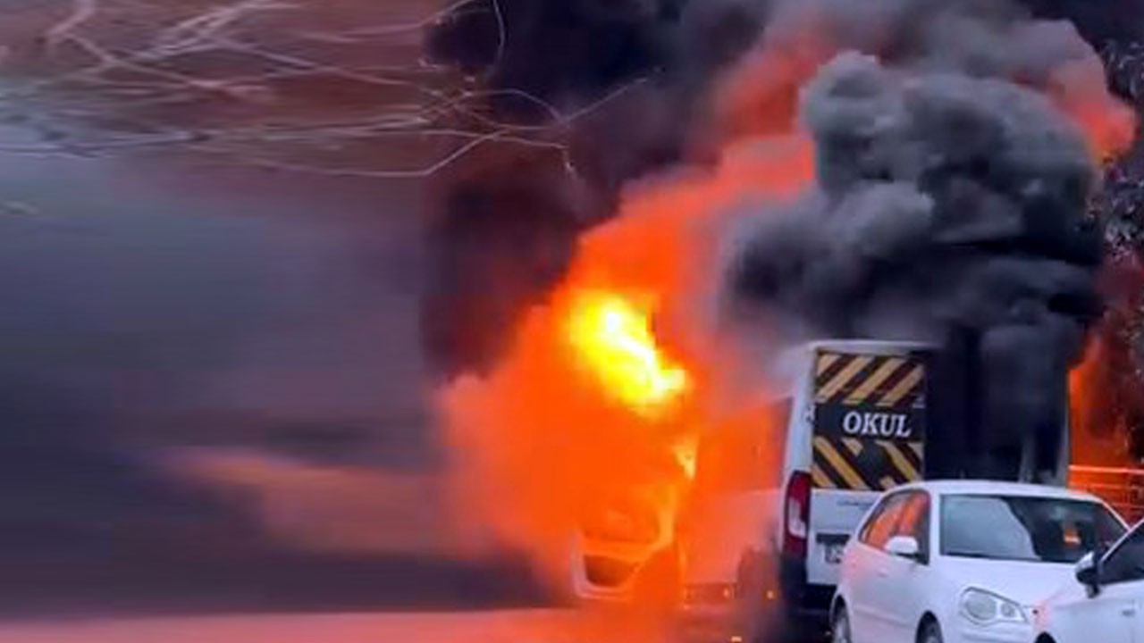 Yanan servis minibüsünün şoförü Hidayet Güven, "Arabayı park ettim, yukarı çıktım. Komşular 'araba yanıyor' diye haber verdi. Araba cayır cayır yandı" dedi.