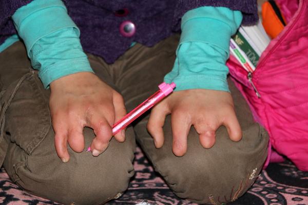 Yüzde 43 engelli Selma, eksik parmaklarına rağmen eğitiminden geri kalmadı. 7'nci sınıf öğrencisi olan Selma, kalemi tam tutamadığı için yazı yazmak da sıkıntı çekiyor.