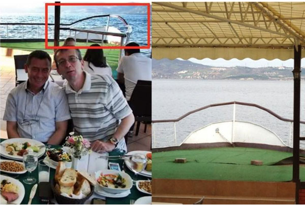 Ayrıca, orijinal fotoğrafta masanın üzerinde duran ıslak mendil ambalajından restoranın Sapanca’da bulunan bir restorant olduğu anlaşılıyor. Restoranın Foursquare üzerinden erişilebilen fotoğrafları ile Reha Kaya’nın paylaştığı aynı akşam çekilen diğer fotoğraflar karşılaştırıldığında restoranın terasında bulunan tekne ucu tasarımı görülebiliyor.