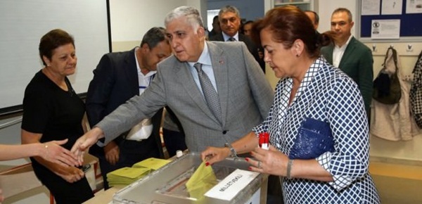 Okula eşi Kamuran Özel ile saat 08.10'da gelen Özel, nüfus cüzdanını görevlilerin kontrol etmesinin ardından 1157 numaralı sandıkta oyunu kullandı.
