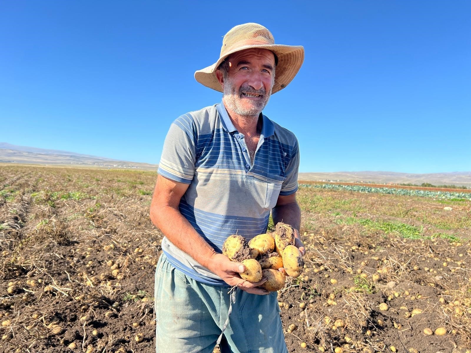Arpaçay'da yaklaşık 30 yıldır bostancılık yapan Seyfettin Üneş, ilkbaharda ektikleri patatesi hasat ettiklerini söyledi.