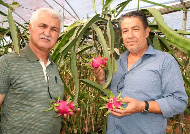 Ziraat Odası Başkanı Rasim Şahin, pitayanın hasat edildiği Kocahasanlı Mahallesi'ndeki seraya giderek üreteci Gani Yıldız ile birlikte incelemelerde bulundu.