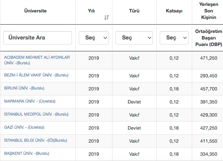YÖK Atlas Patoloji bölümleri taban puanları için tıklayın