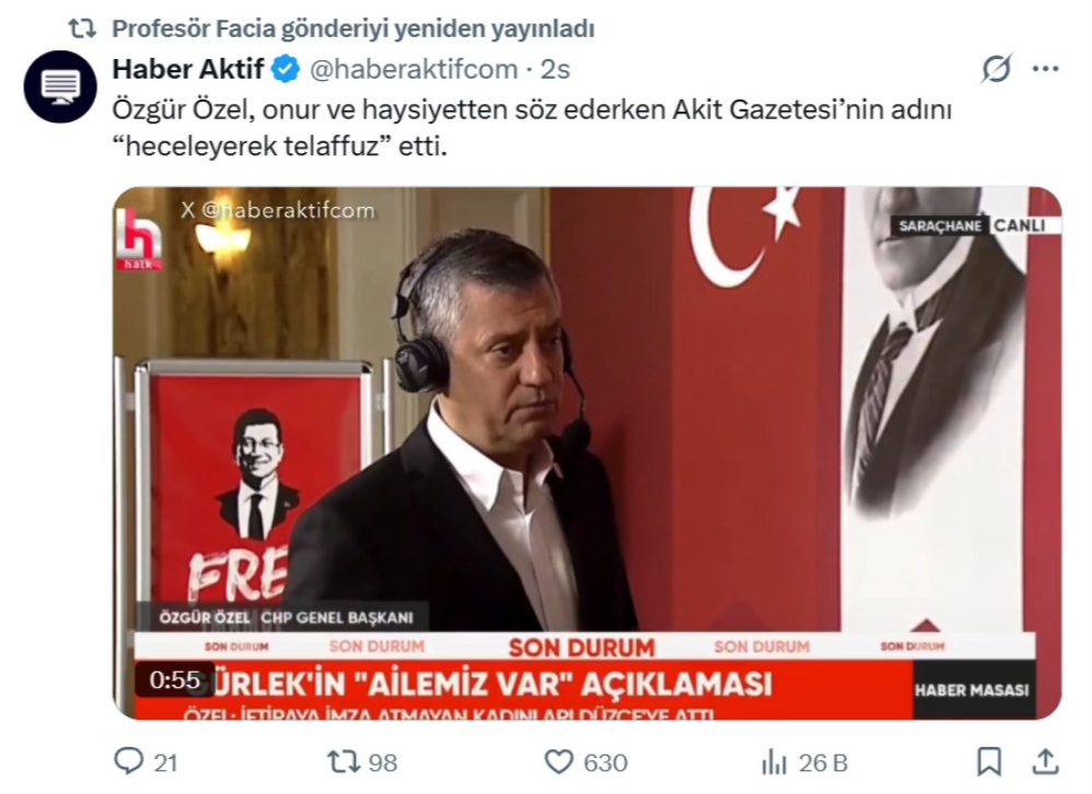 Delege pazarlıklarının ve pavyon köşelerinde ödenen rüşvet paralarının gölgesinde oturduğu CHP koltuğunda sürekli yalan söyleyen ve Adalet Bakanı Akın Gürlek’e yönelik “tapu” iftiraları çöken CHP’nin “mitomani” hastası lideri Özgür Özel, yine Akit’i hedef aldı.