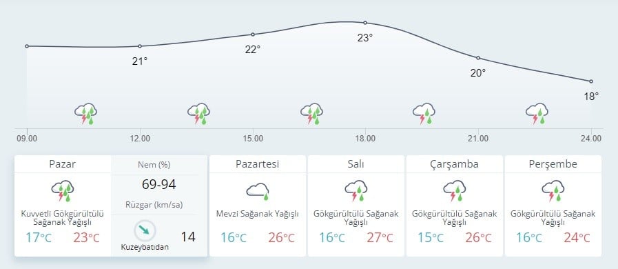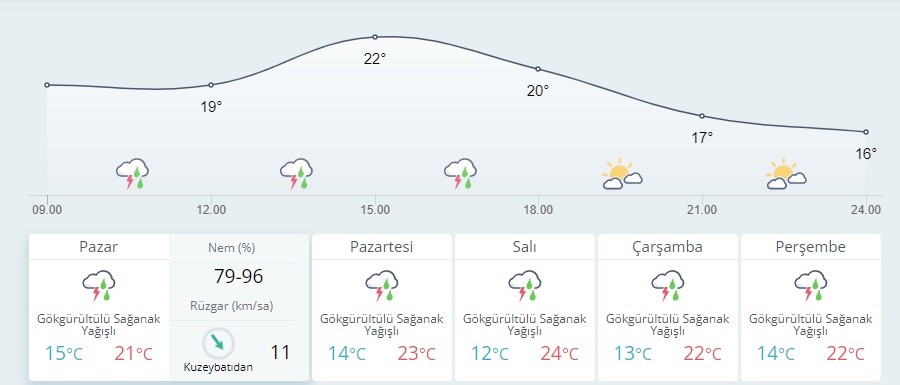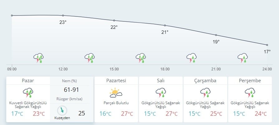 Meteoroloji Genel Müdürlüğünden yapılan açıklamaya göre, günün ilk saatlerinden itibaren Marmara'nın güney ve doğusu (İstanbul, Kocaeli, Sakarya, Yalova, Bursa, Bilecik, Balıkesir ve Çanakkale'nin doğusu) ile zamanla Batı Karadeniz (Bolu Düzce, Karabük, Zonguldak ile Kastamonu, Sinop ve Bartın'ın iç kesimleri), İç Anadolu'nun kuzeybatısı (Ankara, Eskişehir ve Çankırı), Afyonkarahisar ve Kütahya çevreleri ile Çorum'un batısında yerel olarak kuvvetli sağanak ve gök gürültülü sağanak bekleniyor.