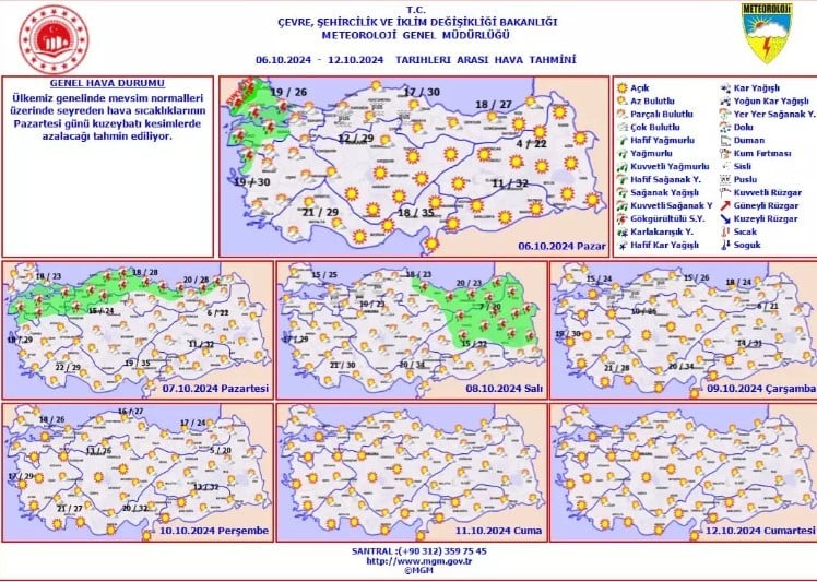 Meteoroloji Genel Müdürlüğü, 6-12 Ekim 2024 tarihlerine ilişkin haftalık hava tahminlerini açıkladı.