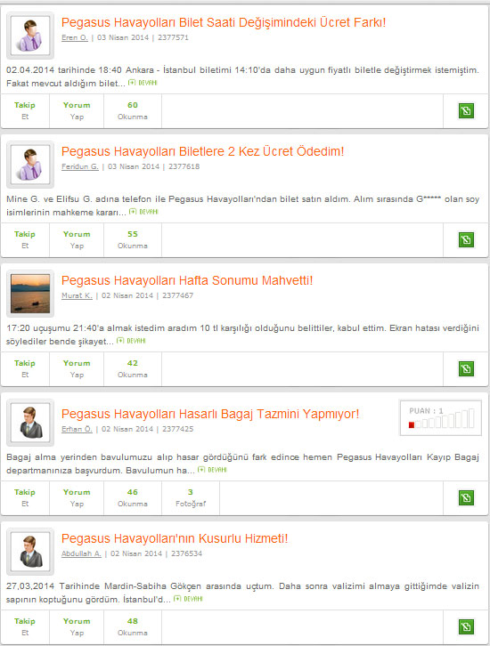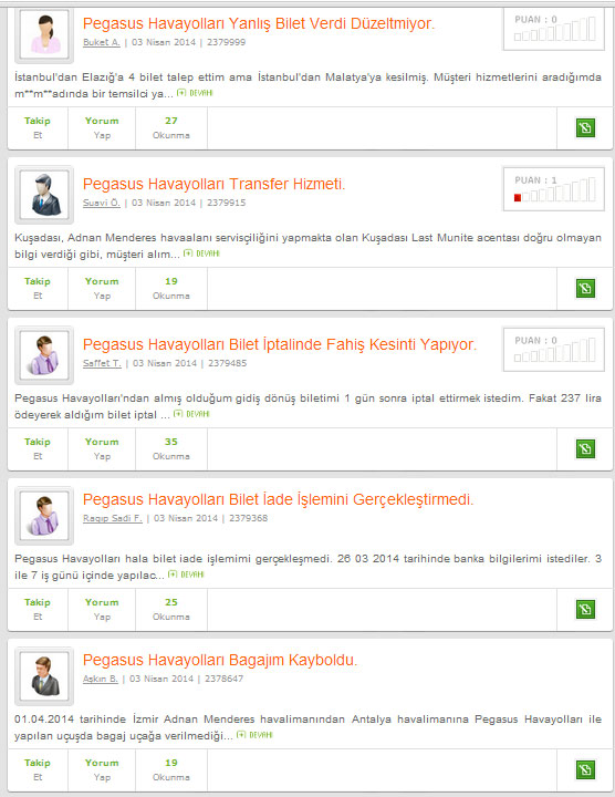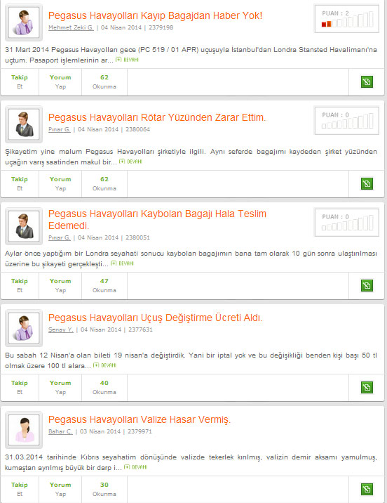 şikayetvar.com.’da yapılan şikayetlerde Pegasus Havayolları’nın, vatandaşların ilgisini ve marka değerini kaybettiği görülüyor.