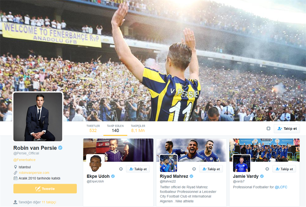 Fenerbahçeli Robin van Persie, Twitter'dan Leicester City'nin yıldızlarını takip edince ortalık karıştı. İngiliz basınına da konu olan bu olay Hollandalı yıldız için transfer dedikodularına sebep oldu.