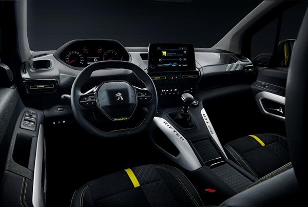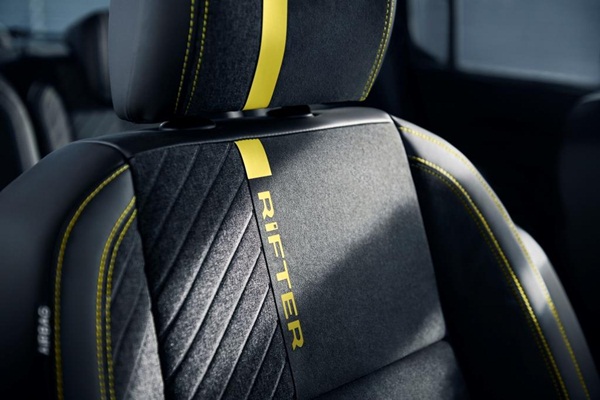 Dış tasarımda olduğu gibi iç mekanda da farklı malzeme ve renkler kullanılıyor. RIFTER logolu koltuklar siyah alcantara ve gri kabartmalı kumaş yüzeyiyle modern ve dinamik bir görünüm sunuyor. Dış tasarımda olduğu gibi iç tasarımda da zarif sarı detaylar kullanılıyor. Peugeot i-Cockpit®'in direksiyon simidin deri kaplamasında da sarı dikişler dikkat çekiyor. Sarı süslemelerde olduğu gibi tasarımda bütünlüğü sağlamak üzere ön konsolda da saten gri dekoratif uygulamalar bulunuyor. Orta konsol ve kapı panellerinde uygulanan işlenmiş alüminyum yüzeyler daha dinamik bir görünüm sergilerken kalite algısını yükseltiyor.