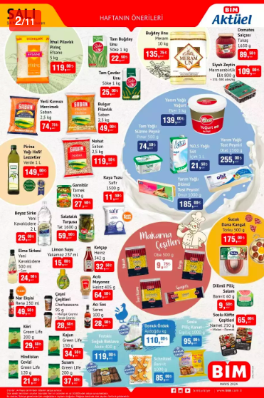 BİM 14- 17 Mayıs 2024 tarihli aktüel ürünler kataloğunu yayınladı. Salı günü başlayacak kampanya dönemi ile birlikte şarküteri, bakliyat, yemeklik, temizlik ve kişisel bakım ürünlerinin yanında buzdolabı, bulaşık ve çamaşır makinesi de satışa sunulacak.