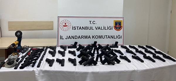 İstanbul İl Jandarma Komutanlığı ekipleri, piyasadan temin ettikleri silah parçalarını bir elektrikçi dükkanında birleştirerek tabancaya dönüştürüp, suç örgütlerine satan zanlılara yönelik operasyon düzenledi. Operasyonda 2 kişi gözaltına alınırken, 43 adet Glock Gen4 marka tabanca ile tabanca üretiminde kullanılan çok sayıda malzeme ele geçirildi.
