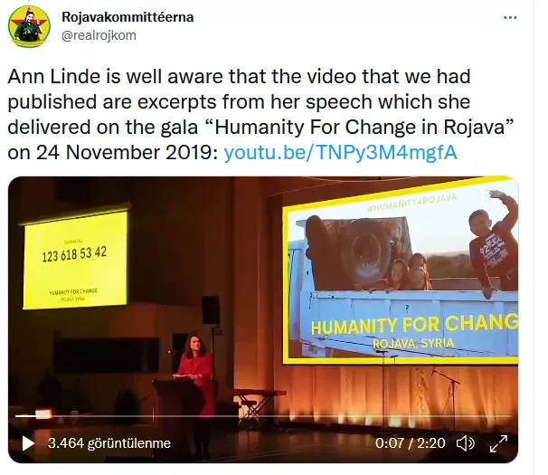 Bakanlık tarafından, Dışişleri Bakanı Ann Linde'nin hiçbir zaman PKK'ya destek ifadesinde bulunmadığı ve manipüle edilmiş videoyu reddettiği açıklanmıştı.