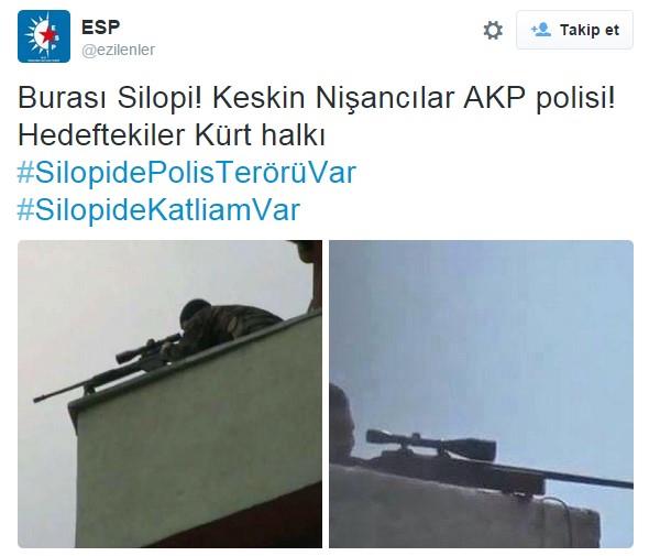 PKK terör örgütü ve HDP'ye yakınlığıyla bilinen yayın organları ve sosyal medya hesaplarında Şırnak'ın Silopi ilçesinde polisin katliam yaptığı, hatta keskin nişancıyla sivilleri vurduğu iddia etti.