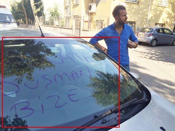 Kelebek'in haberine göre, arabasına binmek üzereyken camında 'Polat'a düşman bize düşman' yazısını gören oyuncu lastiklerin patladığını da fark etti.