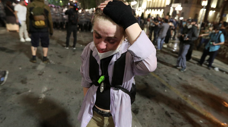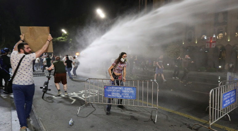 Gürcistan'da, "yabancı etkinin şeffaflığı" konulu yasa tasarısı karşıtı gösteriler ederken polis eylemcilere müdahalede bulundu.