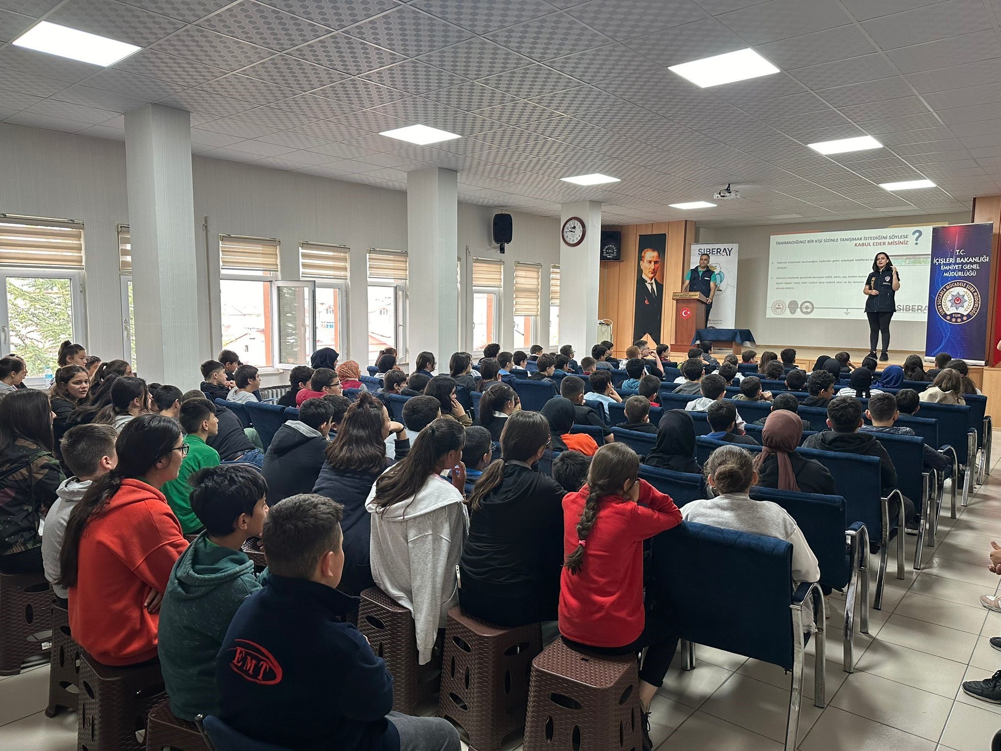 Samsun'da siber polisi, öğrencileri dijital tehlikelere karşı bilgilendirdi.
