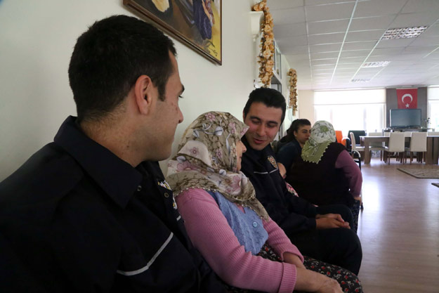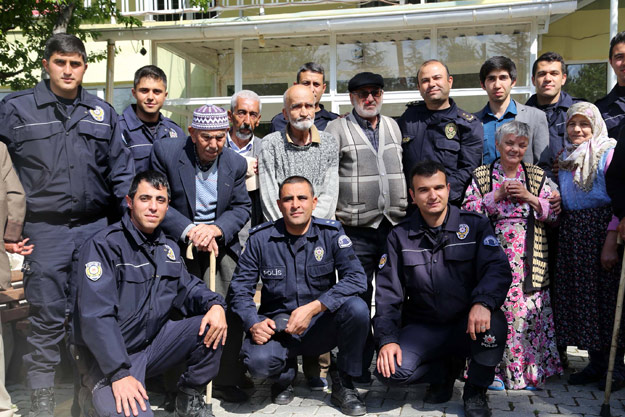 Ardından huzurevi salonunda yaşlılarla bir araya gelen polisler, yaşlılarla sohbet ederek birlikte fotoğraf çektirdi.