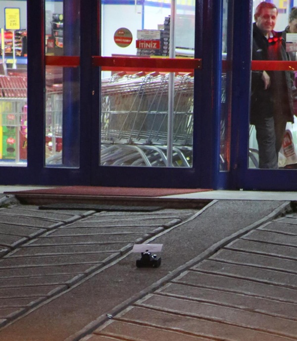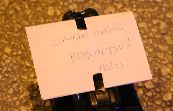 Bomba imha uzmanı, şüpheli poşetin yakınında bulunan bir marketin camından olayı izleyen vatandaşları uyarmak için uzaktan kumandalı bir oyuncak tankı, üzerine "Cam önünü boşaltın, polis" yazarak marketin önüne gönderdi. Yazıyı gören vatandaşlar camın önünden uzaklaştı.