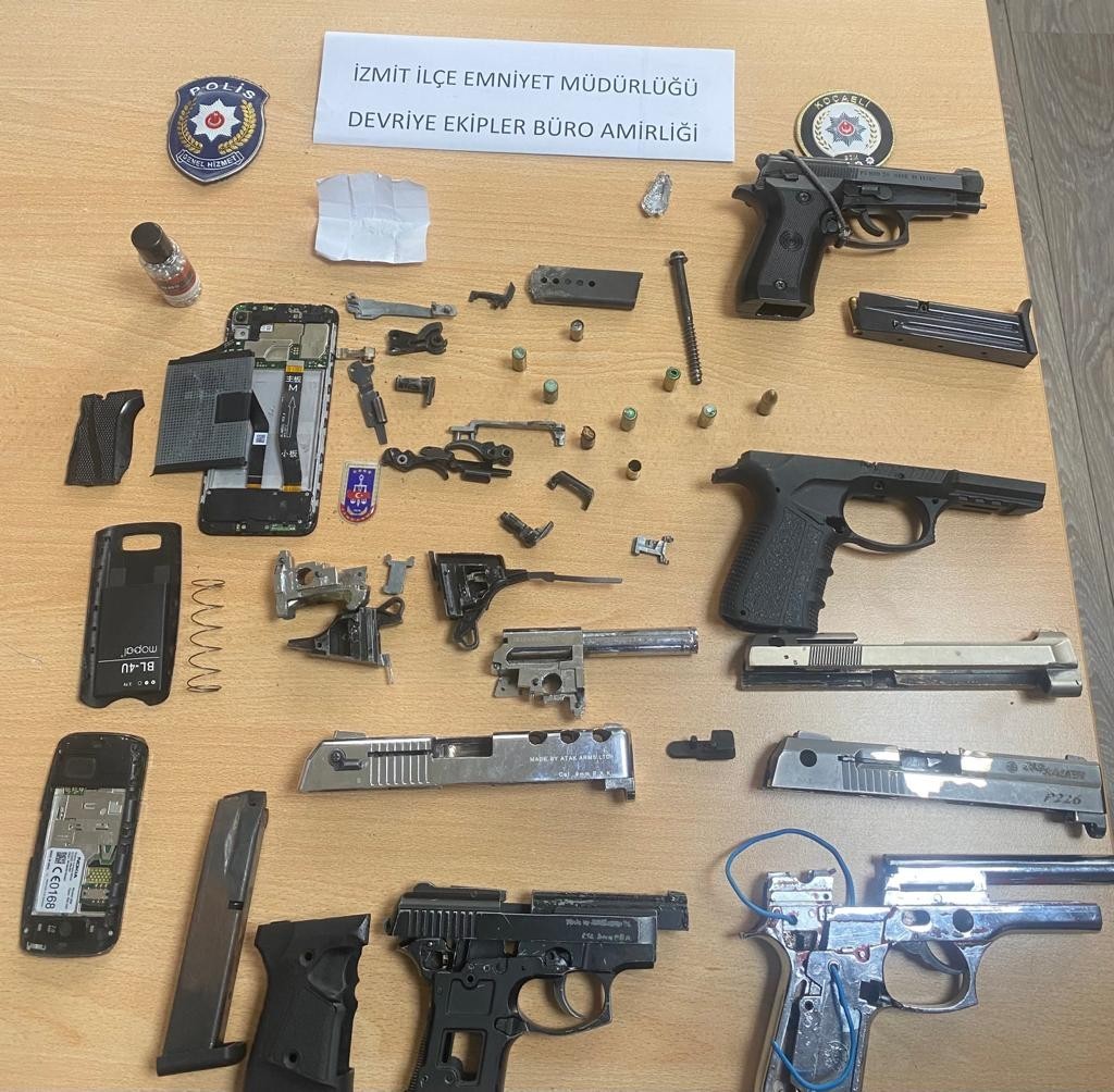 Kocaeli İl Emniyet Müdürlüğü ekiplerince Ç.K. isimli şüpheli şahsın evinde arama yapıldı. Polis ekiplerince yapılan aramada kurusıkıdan bozma tabanca, 7 fişek, silah gövdeleri, namlu, yay ve parçaları, 2 parça sarılı halde metamfetamin maddesi ele geçirildi. Şüpheli gözaltına alındı.