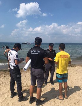 Sahil bölgelerinde yaşanan boğulma olaylarının önüne geçebilmek için polisler plajlara inerek vatandaşları bilgilendirerek el ilanları ve afişleme çalışmaları yaptılar.