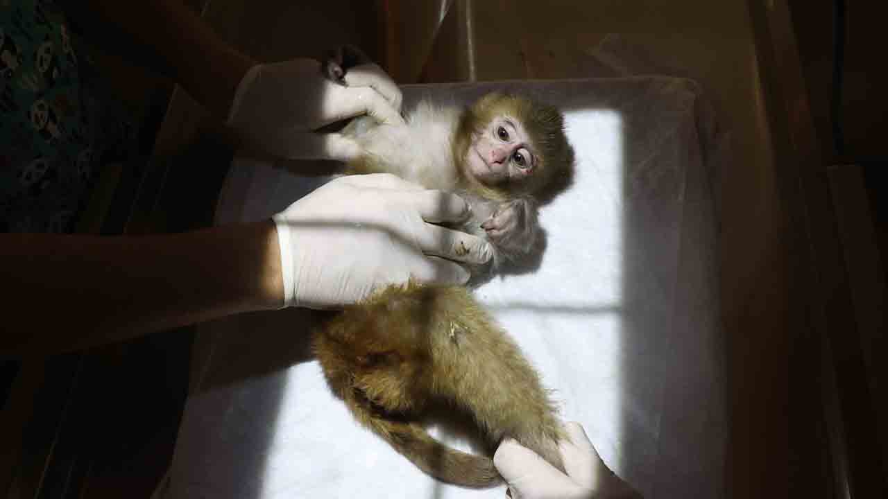 Yaşam parkının veteriner kliniğinde sağlık kontrolünden geçirilen maymun yavrusu, karantinaya alındı.