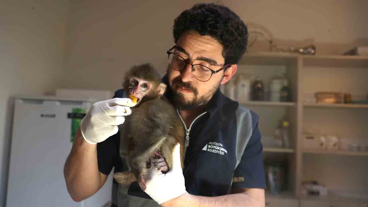Kentte polis ekiplerince uyuşturucu operasyonu düzenlenen evde bulunarak el konulan 4 aylık erkek rhesus cinsi maymun yavrusu, Antalya Doğal Yaşam Parkı'na teslim edildi.