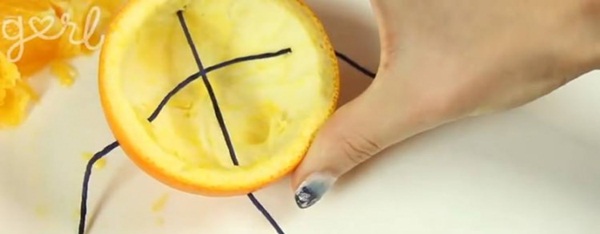 Portakalı ortadan ikiye keserek içini temizleyin. Temizlediğiniz portakal kabuğuna çöp şiş ile delikler açın.