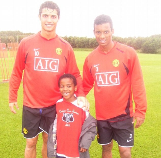 Manchester United altyapısında futbola başlayan Angel Gomes, Nani ve Ronaldo ile birlikte.