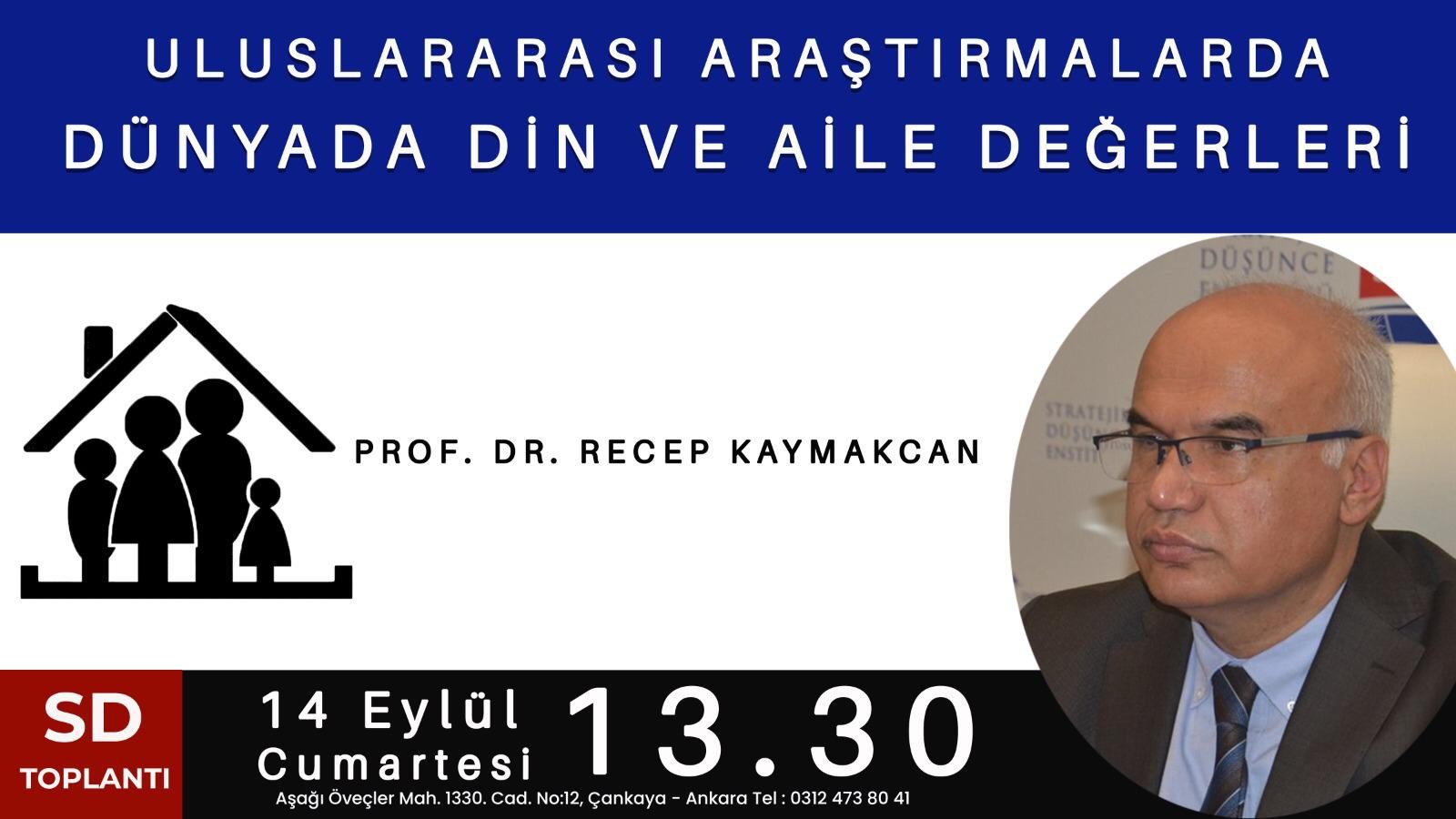 14 Eylül Cumartesi günü saat 13.30'da Ankara Çankaya'da önemli bir toplantı gerçekleşecek. Prof. Dr. Recep Kaymakcan, "Uluslararası Araştırmalarda Dünyada Din ve Aile Değerleri" başlıklı bir sunum yapacak.