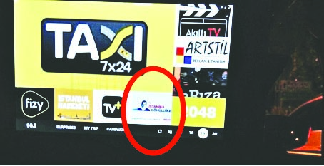 Sarı taksilerde yer alan “Taxi 7x24” isimli dijital uygulamada, CHP’nin İstanbul adayı Ekrem İmamoğlu’nun propaganda videolarının yayınlandığı tespit edildi. Koltuklara monte edilmiş sistemlerde İmamoğlu’na destek amaçlı “İstanbul Gönüllüleri” videosunun öne çıkarılması dikkat çekti.