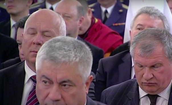 Fakat Vladimir Putin'in yaptığı konuşma sırasında , Rusya Başbakanı Dmitri Medvedev dahil salondaki çok sayıda kişinin zaman zaman uyuduğu dikkatleri çekti.