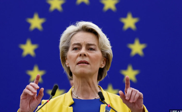 Von der Leyen, AB'nin Rusya'dan gaz sevkiyatının durmasına ve kış dönemine hazır olduğuna dikkati çekerek, "AB genelinde doğal gaz depoları dolu." ifadesini kullandı.