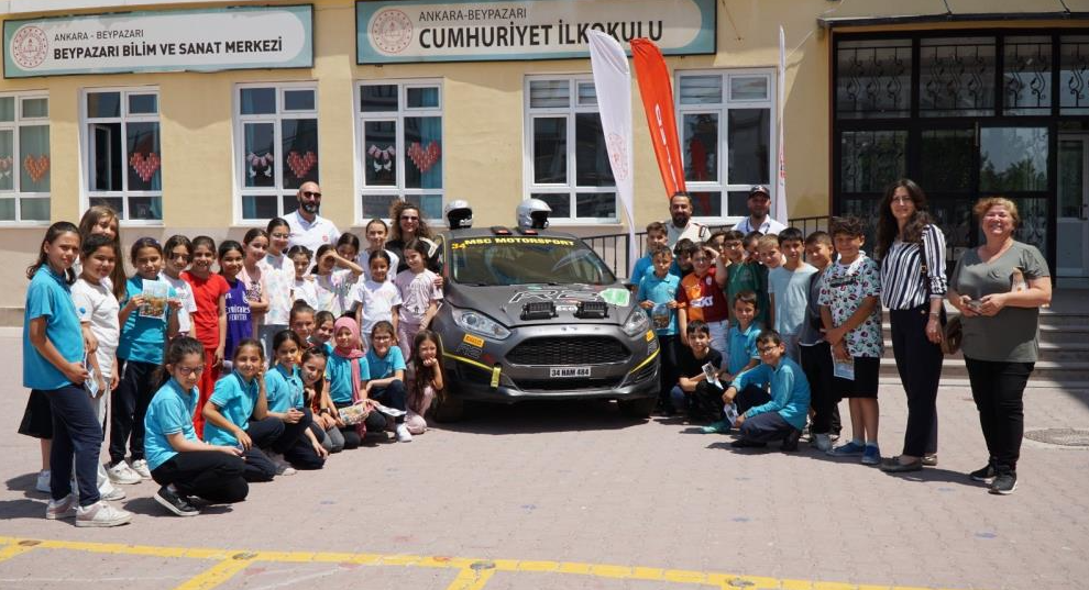 Beypazarı ilçesinde düzenlenecek olan Hitit Rallisi kapsamında ilçeye gelen pilotlar Cumhuriyet İlköğretim Okulu'nu ziyaret ederek öğrencilerle bir araya geldi.