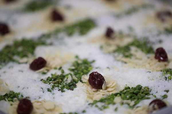 Tatlının üzerini meyve, ceviz ve Antep fıstığı ile süsleyebilirsiniz.