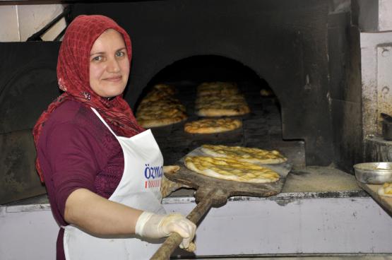 Amasya'nın Taşova ilçesine bağlı Alparslan köyünde, eşinin işlettiği fırında eleman sıkıntısı yaşanması nedeniyle işe başlayan daha sonra eşi iş değiştirince fırını devralan Ayfer Kadıoğulları (41), oğlu ve bir kadın elemanla fırınını ustalıkla işletiyor.
