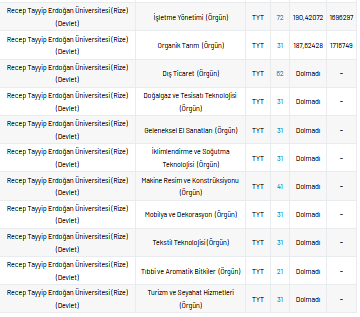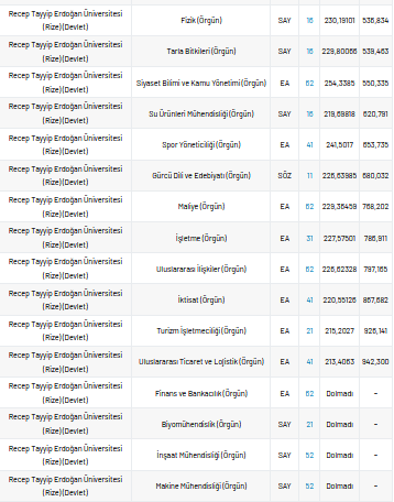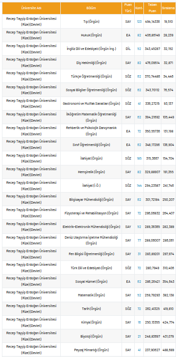 Recep Tayyip Erdoğan Üniversitesi 2021 taban puanları ve yüzdelik dilimleri nelerdir?
