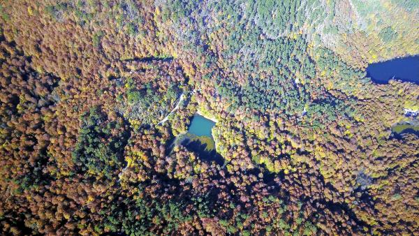 Bolu'da, sonbaharın tüm renklerini barındıran doğa harikası Yedigöller Milli Parkı, hafta sonunda ziyaretçi yoğunluğu yaşandı. Yedigöller'in içindeki park alanları, tamamen dolarken, girişte uzun araç kuyrukları oluştu. Drone ile havadan görüntülenen Yedigöller'de seyrine doyumsuz manzaralar ortaya çıktı .