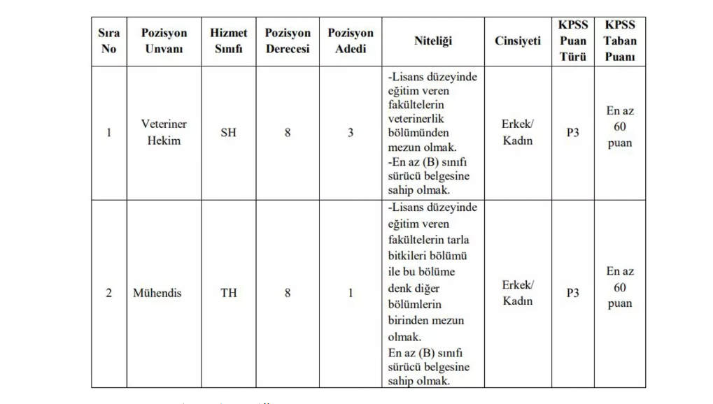 Personel alımı ilanında istenen KPSS puan türü, KPSS taban puanı ve niteliklerle ilgili detaylar aşağıda yer alıyor.