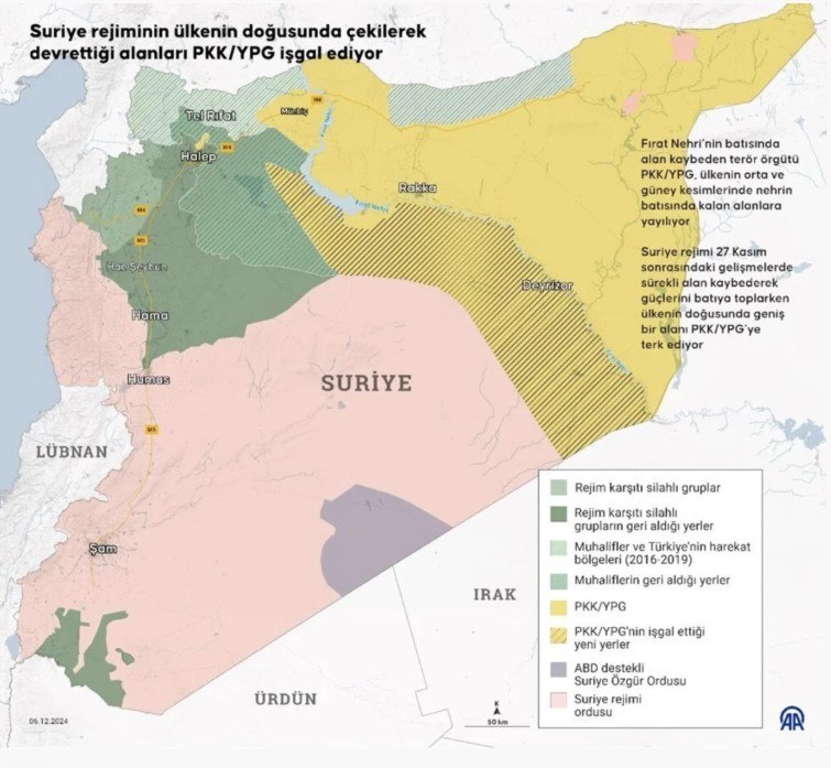 Rejim güçleri dün Irak sınırındaki Deyrizor kentinin doğusundan çekilmiş ve burayı terör örgütü PKK/YPG'ye devretmişti.