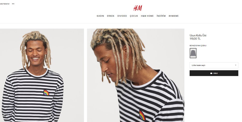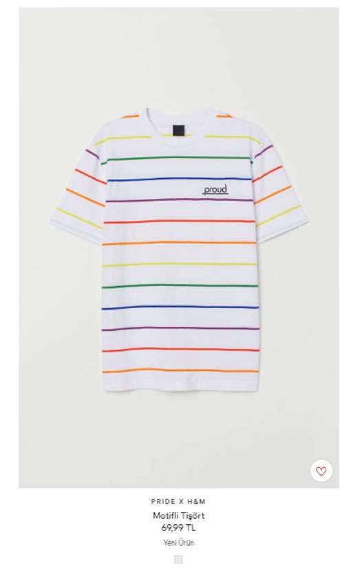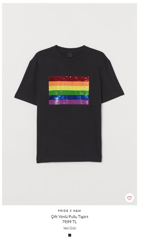 Dünyanın önde gelen giyim firmalarından H&M, eşcinsellerin sözde onur haftasını fırsata çevirdi. Türkiye'de resmi internet sitesinden eşcinsel ürünleri satışa sunan H&M, yüksek fiyatıyla da dikkat çekti.