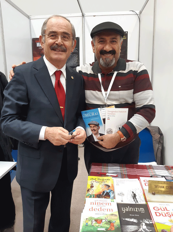 Musa Dinç, CHP'li Eskişehir Belediye Başkanı Yılmaz Büyükerşen ile bir kitap fuarında karşılaşmış ve ikili arasındaki samimi anlar kameralara yansımıştı.