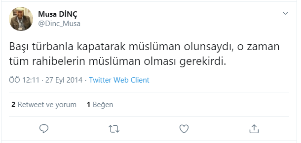 Dinç, 2014 yılında attığı bir twitinde 'Başı türbanlara kapatarak müslüman olunsaydı, o zaman tüm rahibelerin müslüman olması gerekirdi' diyerek İslam'ın emri başörtüsüne karşı da akılalmaz ifadeler kullanmış!..