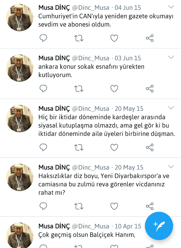 İşte Musa Dinç’in yaptığı bazı paylaşımlar: