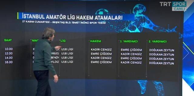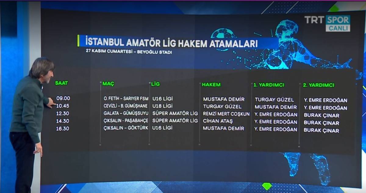 Spor yorumcusu Rıdvan Dilmen, İstanbul Amatör Kümede geçtiğimiz hafta İl Hakem Kurulu tarafından yapılan hakem atamalarını gündemine taşıdı. Hakem atamalarında bir hakemin günde 5 maça çıktığı görülüyor.